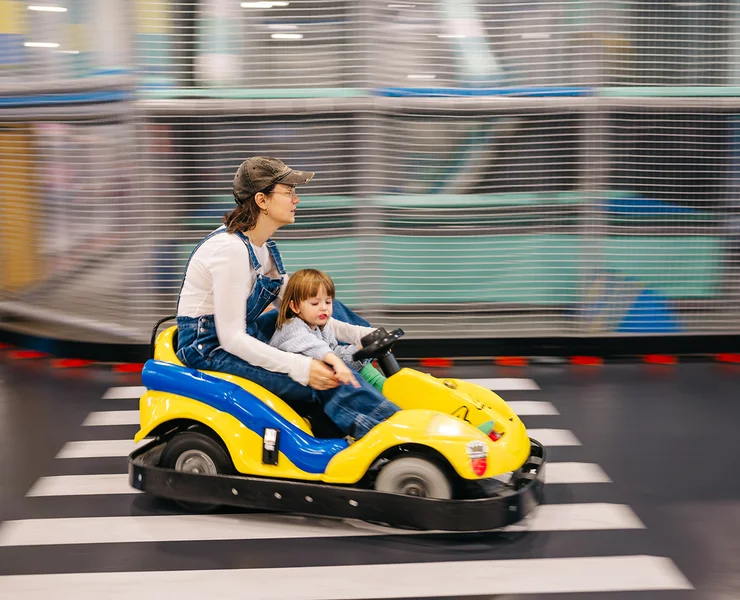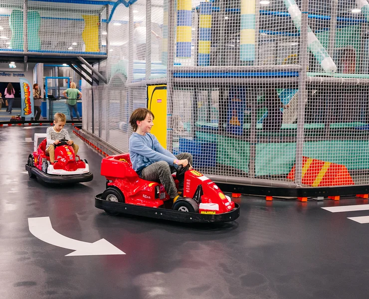 Mūsdienīgi aprīkotajā elektromobiļu kartodromā nav ne benzīna, ne dīzeļdegvielas, jo tās ir elektriski uzlādētas automašīnas. Trasē esam uzstādījuši dabiska lieluma luksoforu, kas darbojas kā īstā pilsētā - bērniem ir iespēja drošā vidē iepazīties un apgūt satiksmes drošības noteikumus un prasības.