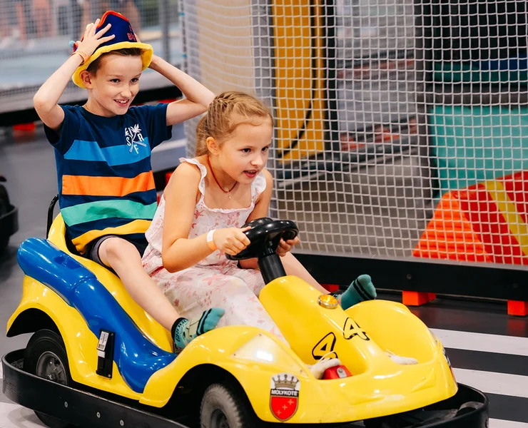 Ģimenes izklaides parkā ADVENTICA caur vitrīnām visredzamākajā vietā zem slēgta jumta ir elektrisko automašīnu kartodroms. Tas ir gandrīz vienīgais pakalpojums par papildmaksu visā atrakciju parkā (izņemot dažus spēļu galdus). Bērni un pieaugušie var pārvietoties ar elektrisko automašīnu pa īpaši aprīkotu trasi. Dažas automašīnas ir paredzētas jauktai lietošanai - bērni var braukt kopā arī ar pieaugušo.