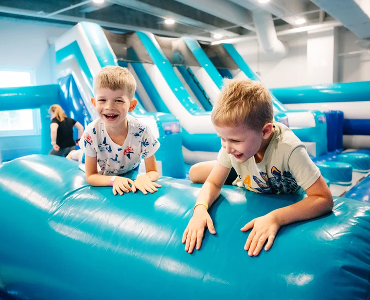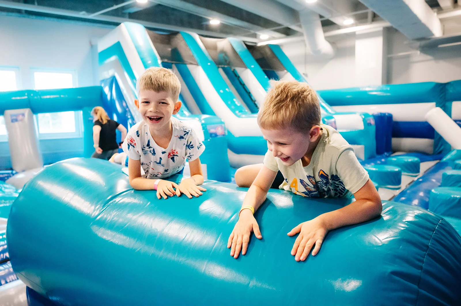 Spēlēties uz milzu piepūšamā laukuma ir atļauts ikvienam, kas ir 3 gadus vecs vai vecāks. Jā, tas attiecas arī uz pieaugušajiem. Arī mums pašiem tas ļoti patīk!